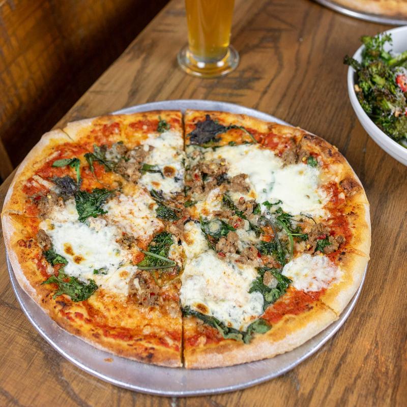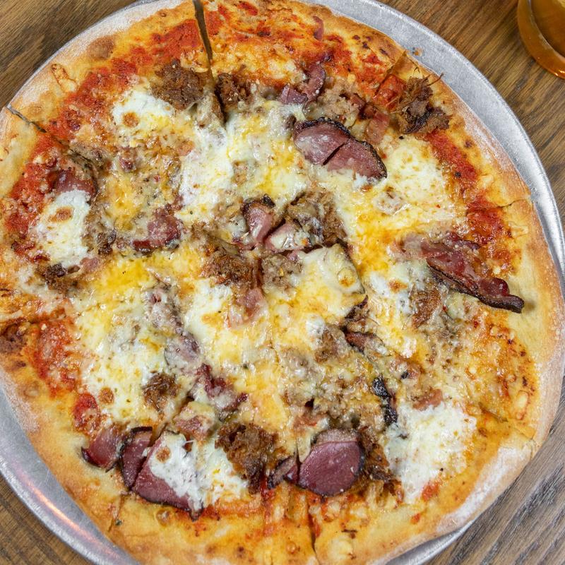 Tomato, sausage, soppressata, pork, duck ham, fontina, and mozzarella