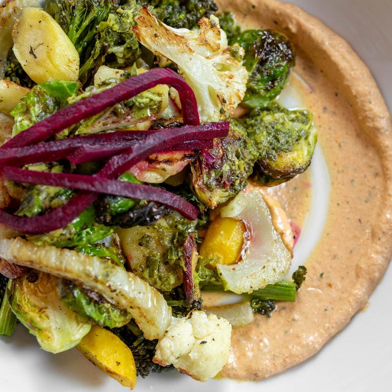 Roasted peppers, Caesar, reggiano, and bread crumbs